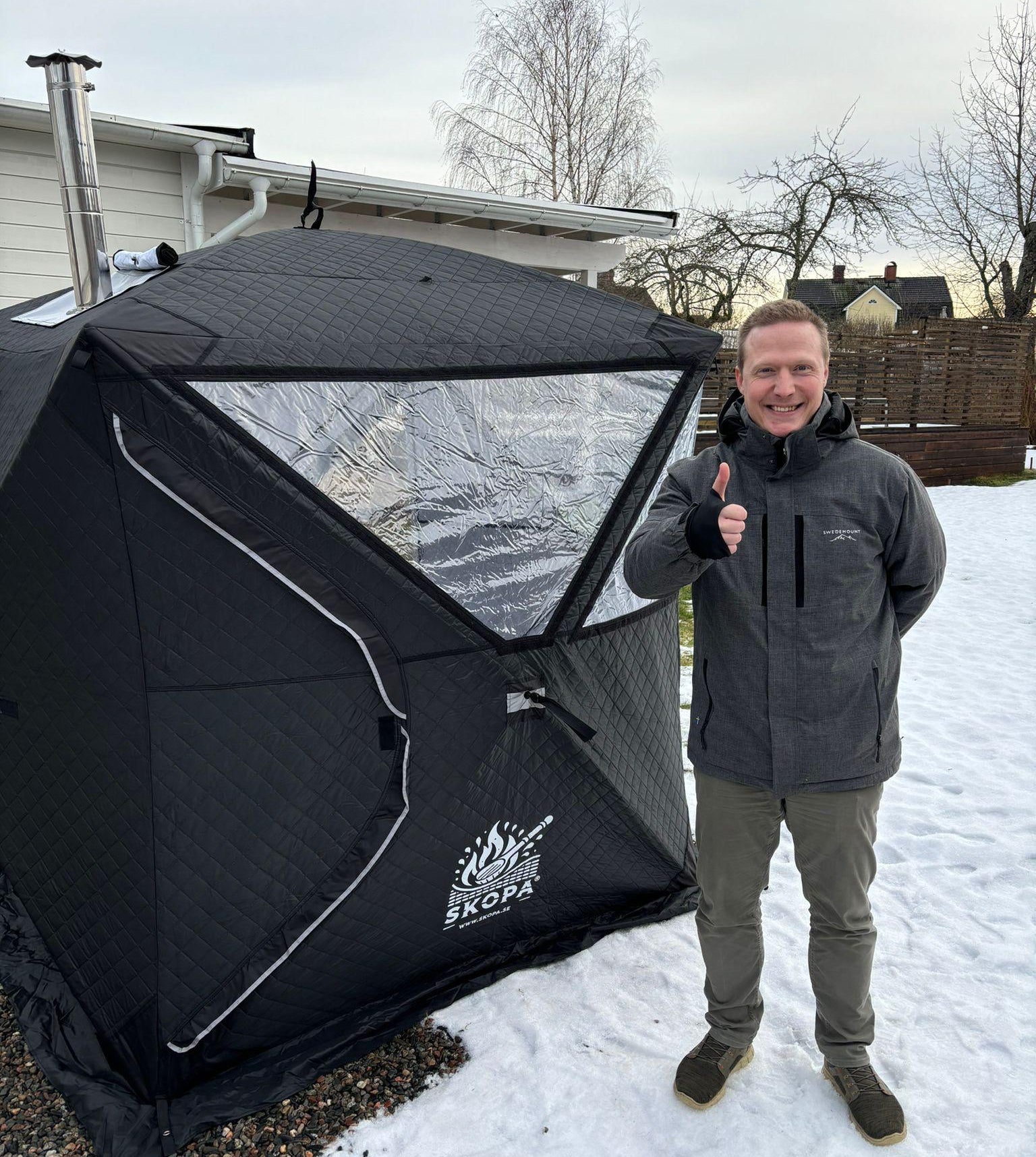 "Våra badturer ut med Badflotten fick en helt ny mening efter att vi fick Skopas Bastutält! Helt enkelt det bästa vi kan tänka oss en skön sommarkväll tillsammans med familj & vänner. Vi är så nöjda och ser framemot att isbada med bastun uppvärmd direkt vid stranden!"