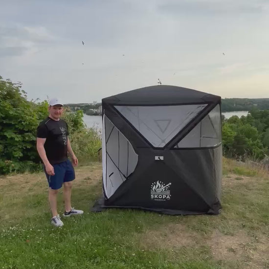 Bastu Hällskär - Avkoppling där du vill! (Bastutält + Kamin + Skorsten + 2 Bänkar)