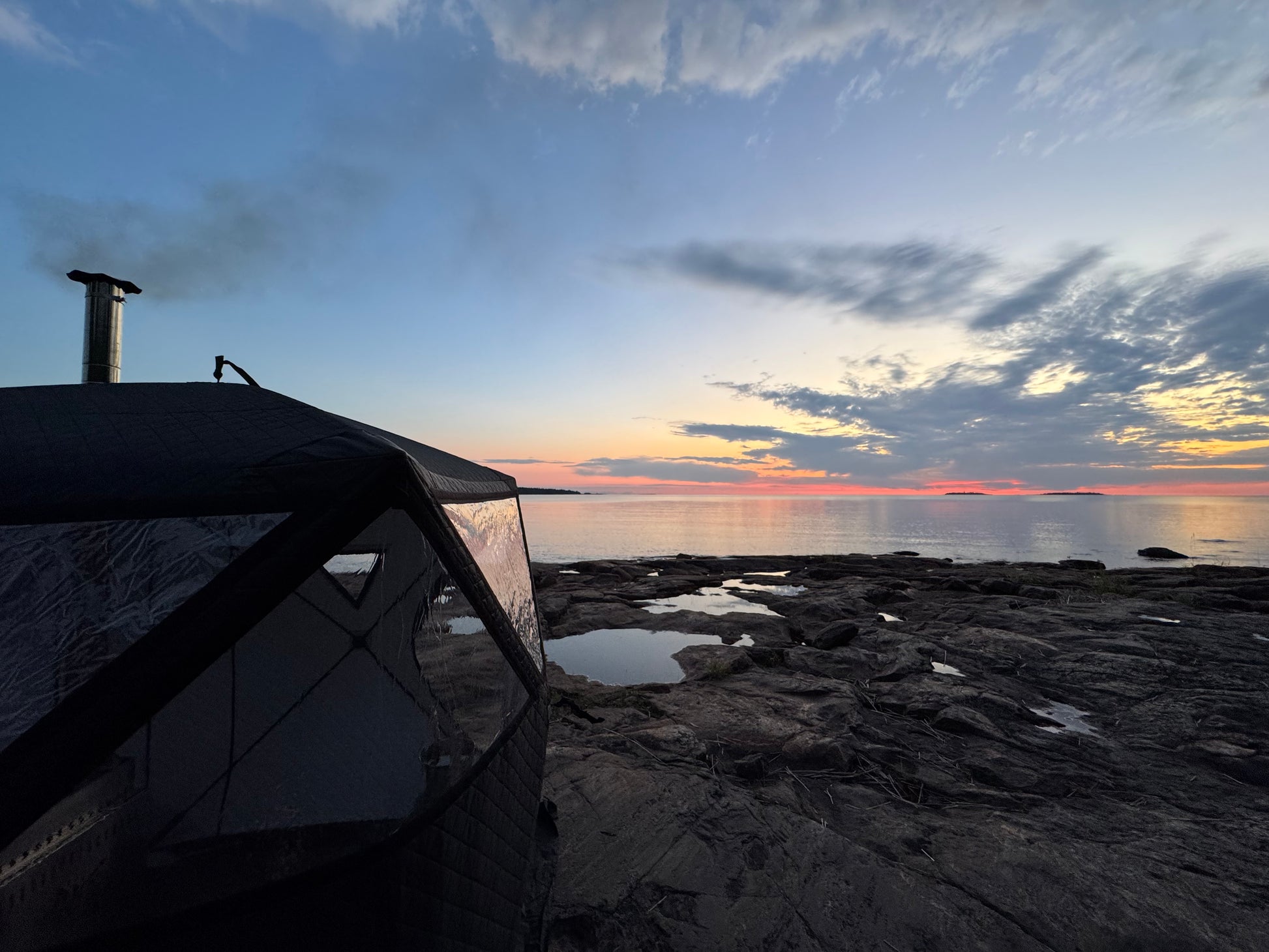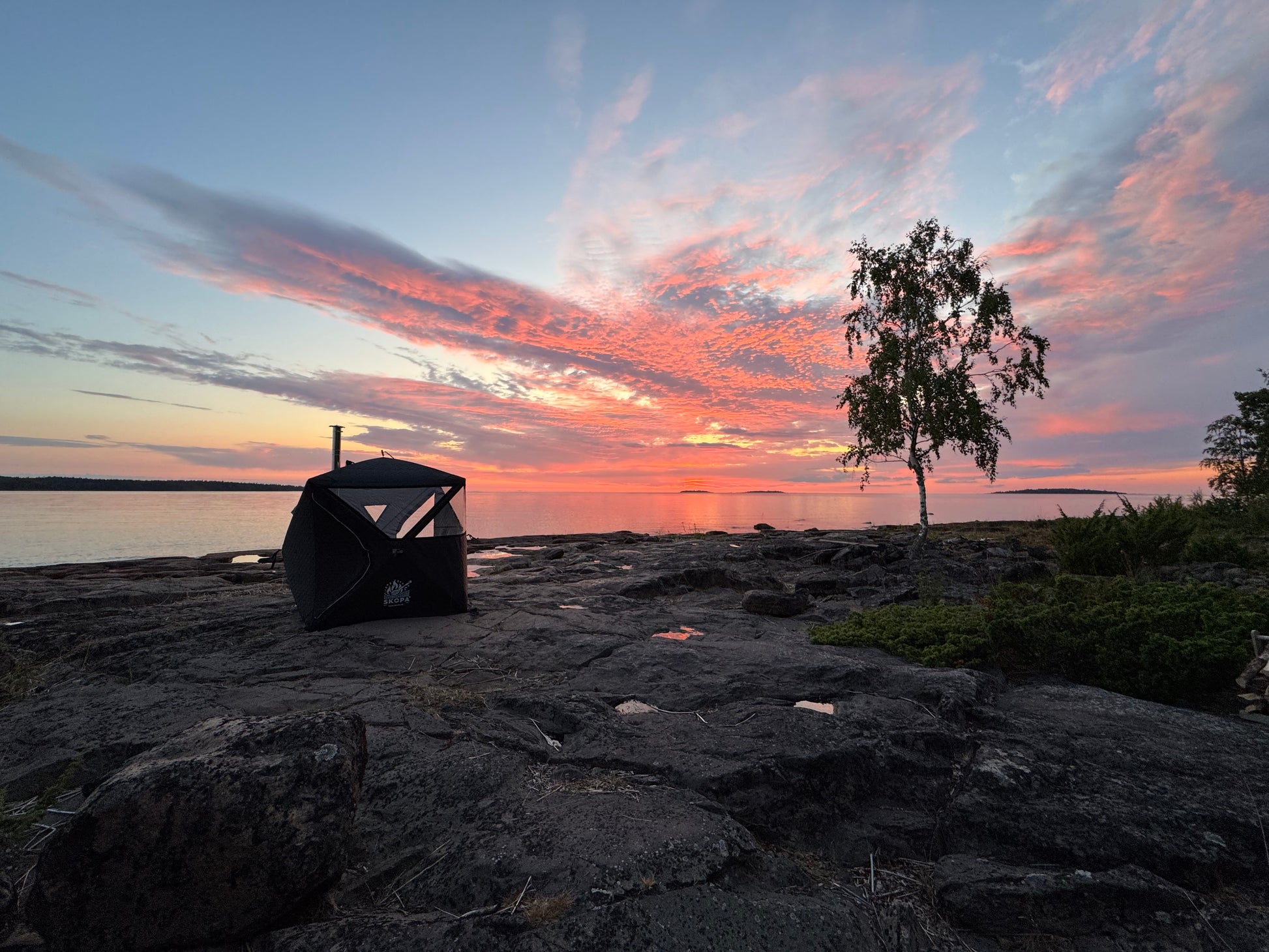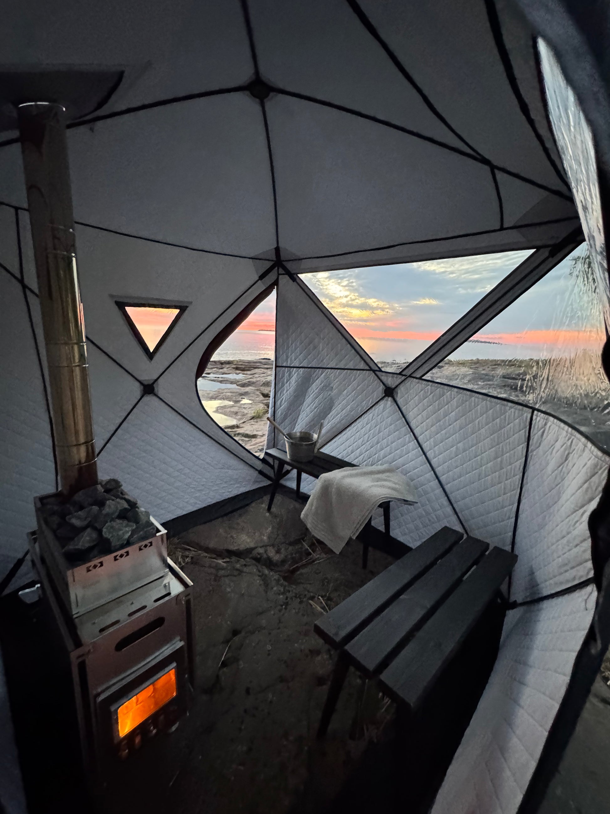 Bastu Hällskär - Avkoppling där du vill! (Bastutält + Kamin + Skorsten + 2 Bänkar)